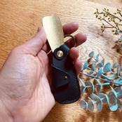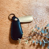 上質な栃木レザーを贅沢に使った、コンパクトなシューホーン(靴べら)キーホルダーです。